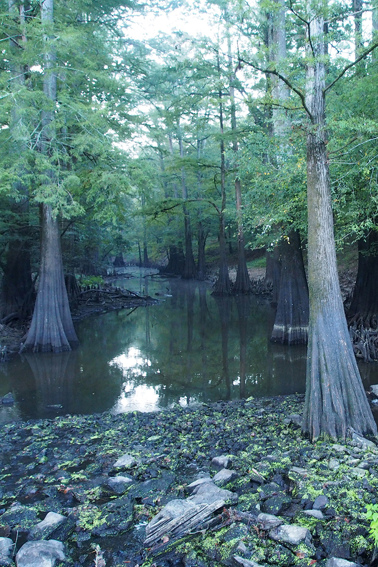 and cypress knees. The creek flows south; flow is minimal most of the year (expect to travel 1-2 miles per hour). At normal water levels, paddling