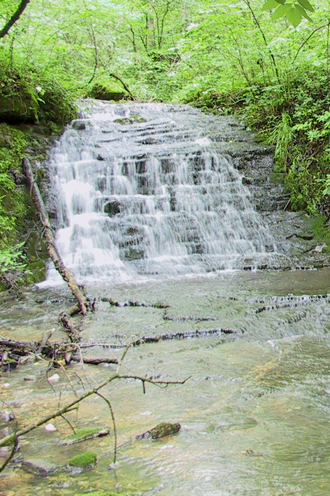 Slippery Hollow Natural Area, located in the Springfield and Salem Plateaus of the Ozark Mountains, consists of steep-sided stream valleys and intervening dry ridges. Upper slopes are forested with a mix of post oak, blackjack oak, and shortleaf pine with calcareous glades on south- and west-facing portions. On the lower slopes, a mesic (moderately moist) hardwood forest of red and white oak, basswood, and sugar maple transitions to rich riparian forests along spring-fed streams. The area provides critical habitat for the federally listed endangered Ozark big-eared bat (Corynorhinus townsendii ingens), federally listed endangered gray bat (Myotis grisescens), and the federally listed threatened northern long-eared bat (Myotis septentrionalis). The area is managed cooperatively with an adjacent tract owned by The Nature Conservancy (TNC).