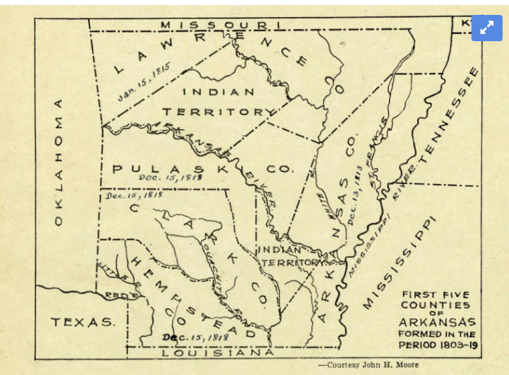 As part of the purchase, Arkansas first became part of the District of Louisiana, then later became part of the Territory of Missouri in 1812 until Missouri petitioned for statehood in 1819. On March 2, 1819, Arkansas officially became its own territory with five counties already established. Lawrence County was one of those five counties, and it was the largest of the five.