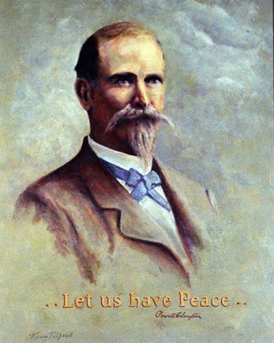 Pennsylvania-born Clayton attended the Partridge Military Academy in Bristol, Pennsylvania, studied civil engineering and moved to Leavenworth, Kansas, to work as a surveyor during the first period of the territory’s growth, as well as engage in land speculation. While his family engaged in Whig, and later, Republican politics in Pennsylvania, there are accounts that on the eve of the Civil War, Clayton identified as a Democrat. He first entered politics in 1860 when he was elected as Leavenworth City Engineer. Enlisting in the Union Army at the start of the Civil War, Clayton, as a company commander in the First Kansas, showed early leadership qualities when his unit saw action in support of Lieutenant Colonel James Totten’s (commander of the Little Rock Arsenal during the crisis of 1861) Battery in the Battle of Wilson’s Creek, Missouri, in August 1861. His unit suffered severe casualties, and his company lost 49 of its 74 men. Cited for leadership, Clayton’s men fought with distinction at the Battle of Helena and accompanied Gen. Frederick Steele’s forces when Steele occupied Little Rock. As commander in Pine Bluff in 1863, he fought back numerous Confederate attacks and fought with Steele’s Camden Expedition in 1864, winning promotion to Brigadier General. Clayton was often said to be the best Union cavalry commander west of the Mississippi.