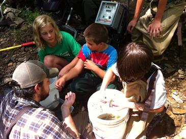 The Arkansas Natural Heritage Commission (ANHC) and the Arkansas Department of Environmental Quality (ADEQ) recently hosted a field trip to Big Creek Natural Area for visitors and commissioners. Participants watched as Jason Throneberry, aquatic species biologist, demonstrated water quality sampling techniques and discussed how to identify aquatic life that lives in Big Creek.