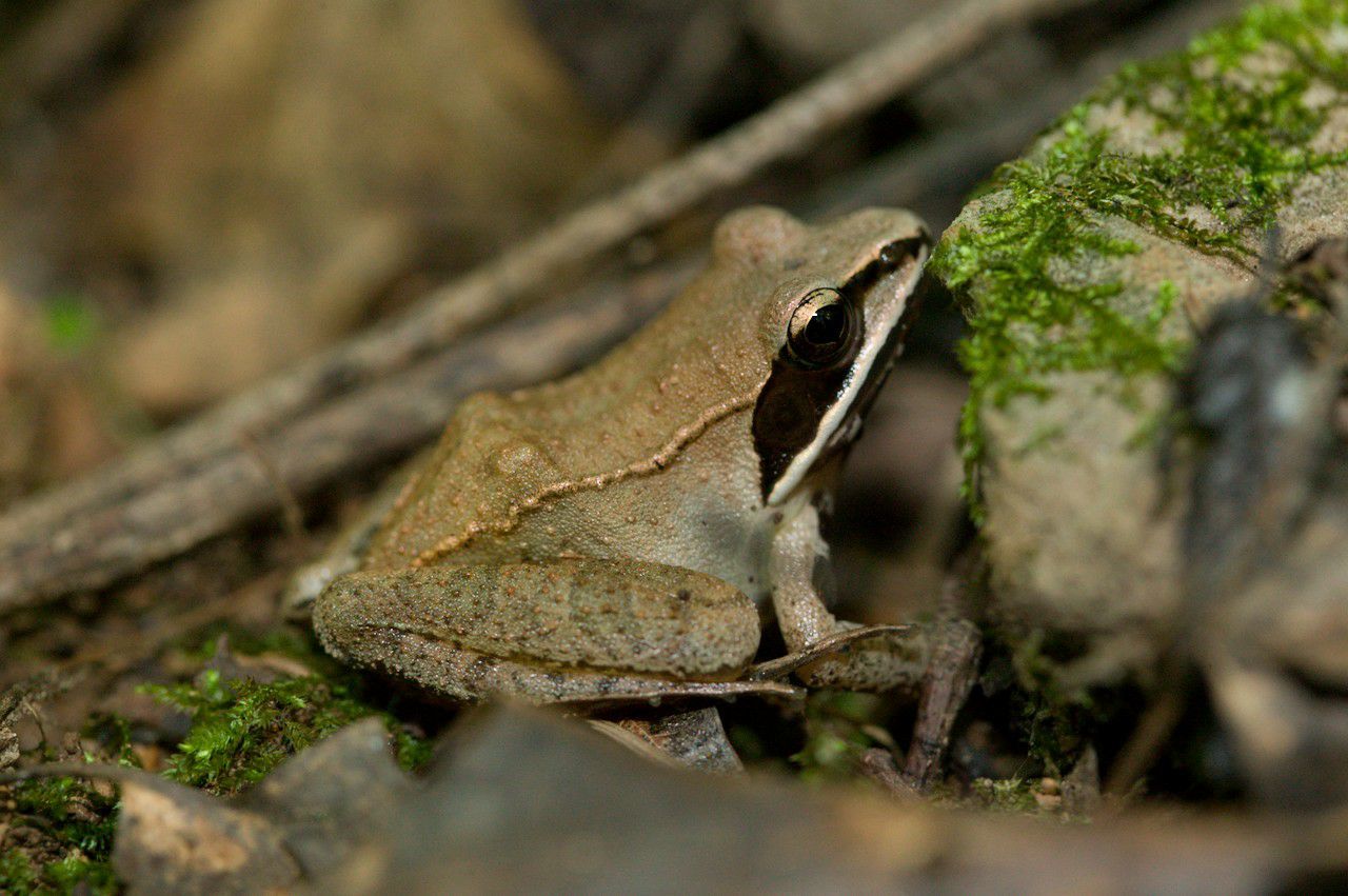 Top — A Wood Frog (Lithobates sylvaticus). Photo by Kory Roberts, used with permission under a CC BY-NC license.