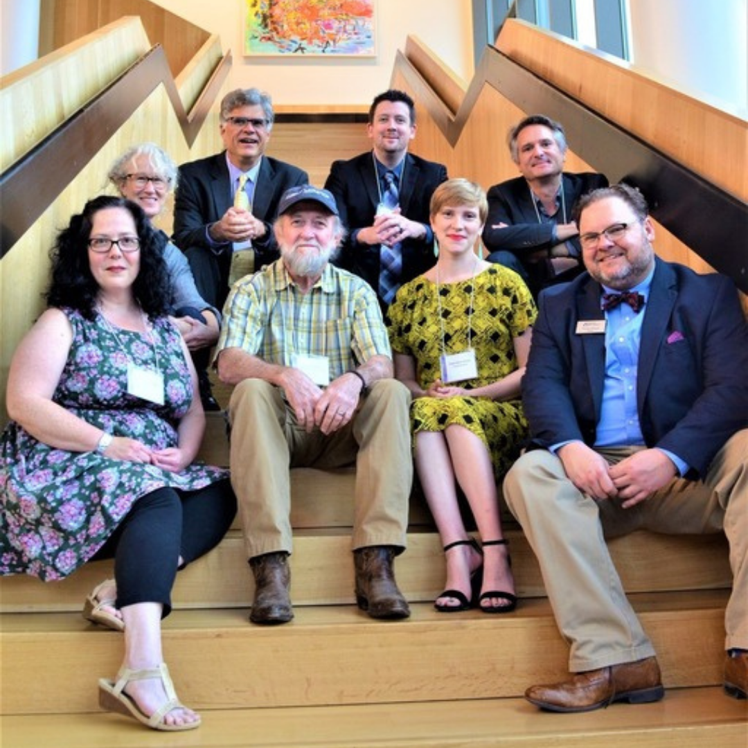 2019 Individual Artist Fellowship recipients: (back) Holly Laws, John Vanderslice, Matthew Boyce, Tyrone Jaeger, (front) Monica Clark-Robinson, Greely Myatt, Robin Neveu Brown, AAC Director Patrick Ralston. Not pictured are: Paiyin Lin-Mros and Linda Nguyen Lopez.