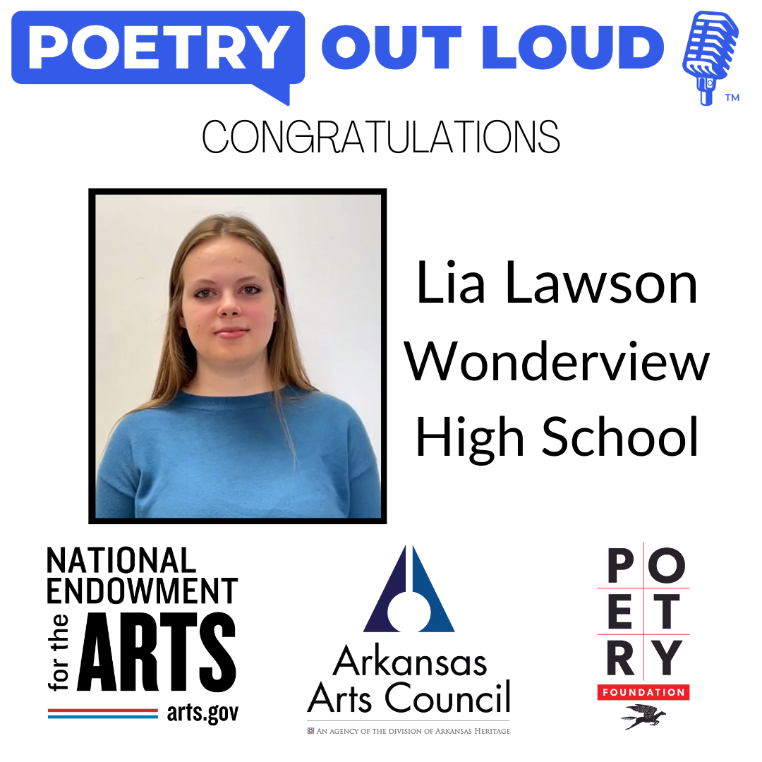 The Arkansas Arts Council is pleased to announce Lia Lawson of Wonderview High School is the winner of this year’s Poetry Out Loud statewide competition.