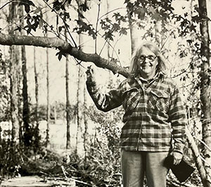 Photo 5 and Main Photo — Dr. Jewel E. Moore at the nature reserve named in her honor, 1983. Photograph by Sonny Rhodes, from the University of Central Arkansas Archives, Dr. Jewel E. Moore Collection.