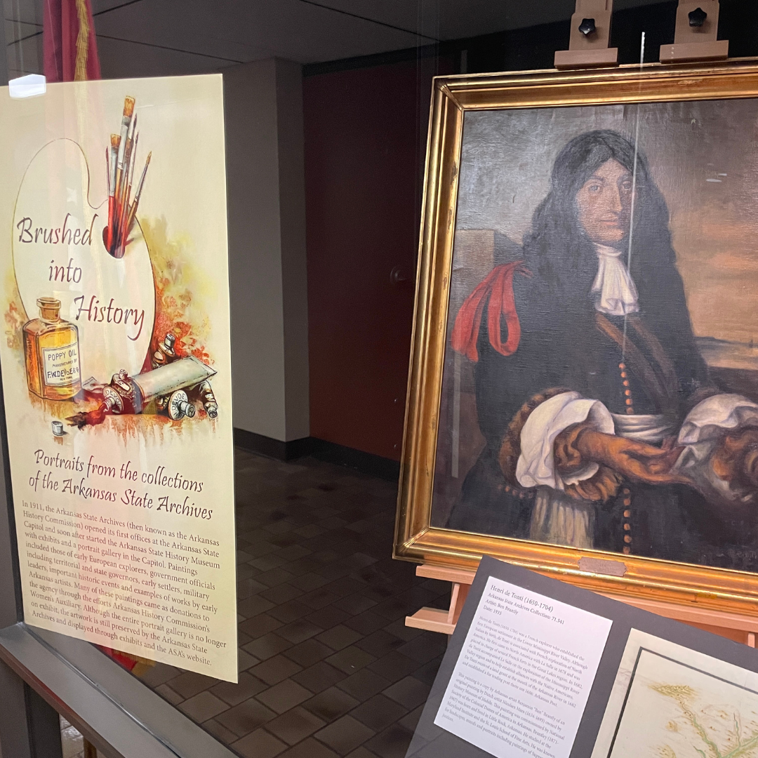 Over the last few months, though, Curator Julienne Crawford has been at work on a replacement. It was certainly time: the exhibit had lasted longer in our cases than America's involvement in the war itself. And so, with encouragement from patrons and her colleagues on the staff, Crawford has carefully retired the exhibited relics while preparing their replacements. This new exhibit, “Brushed into History,” is in fact an opportunity for some of our longtime patrons to reencounter some “old familiar faces,” and for new friends to see unexpected things. During its years in the State Capitol. The Arkansas History Commission maintained the “Arkansas State History Museum,” an assortment of state history-related artifacts and artworks including a portrait gallery of distinguished Arkansians. The portraits came with the Commission to One Capitol Mall and have not been displayed for several years, but the pictures are carefully preserved by the State Archives, and we are happy to be able to have some of them see the light of day once again.