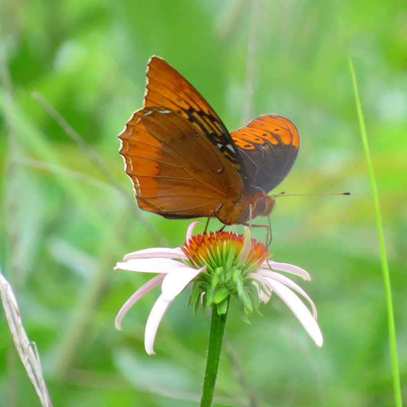 Dianas can be spotted in rich, moist woodlands throughout much of the state. The adult butterflies need high-quality nectar sources, including native wildflowers like purple coneflower and beebalm, while the caterpillars feast on violets.