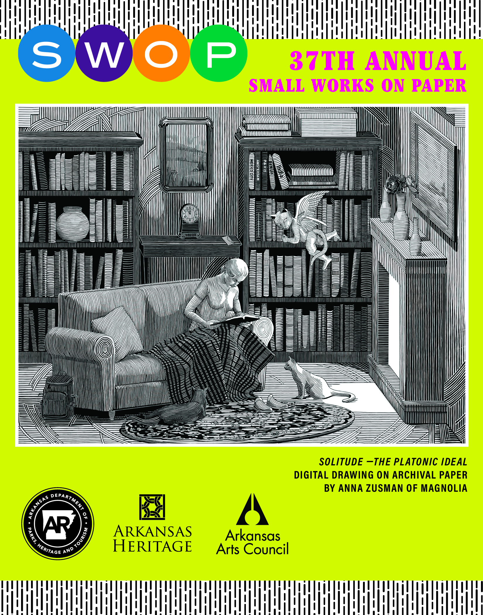 Small Works on Paper is a juried visual art exhibition that showcases artwork no larger than 18- by-24 inches. Now in its 37th year, the exhibition spotlights Arkansas artists who are members of the Arkansas Artist Registry, an online gallery maintained by the Arkansas Arts Council. Most works will be available for sale with all proceeds benefiting the artists.
