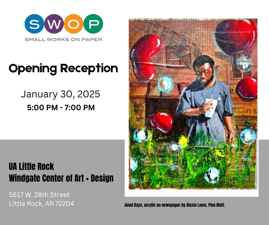 LITTLE ROCK – The opening reception for the 2025 Small Works on Paper touring exhibition, organized and sponsored by the Arkansas Arts Council, is planned for 5-7 p.m. Thursday, Jan. 30, at the University of Arkansas at Little Rock’s Windgate Center of Art + Design, located at 2801 S. University Ave.