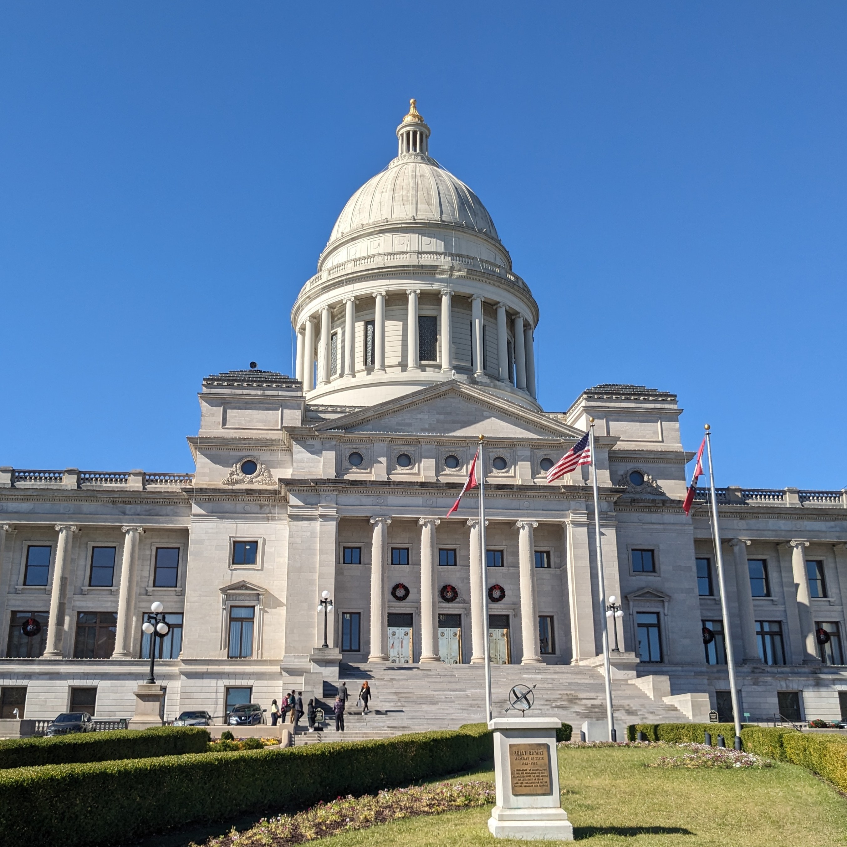 The Arkansas State Capitol is a majestic domed neoclassical statehouse. By the late 1800s, Arkansas’s first State House began to be insufficient for the growing state and its government, so a new capitol was built on the former grounds of the state penitentiary. Construction took place from 1899 to 1915 and was plagued with delays, cost overruns, and scandals. Capitol Commissioner George Donaghey was elected governor in 1908 on a platform to bring the project to completion. Originally designed and begun by architect George Mann, the structure was revised and completed by Cass Gilbert. Home of the legislature since 1911, the capitol has witnessed many important moments of Arkansas state history.